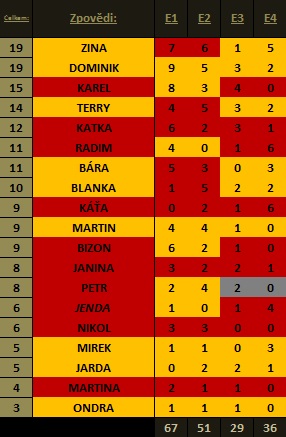 Zde dosavadní tabulka zpovědí, snad je to dobře, podruhý na to koukat nebudu