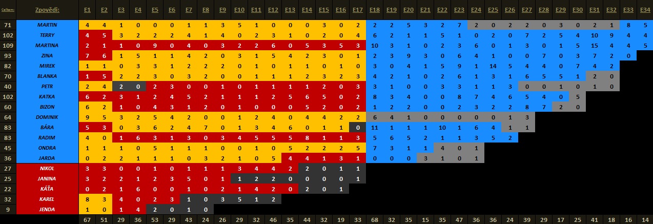 Kompletní tabulka zpovědí: