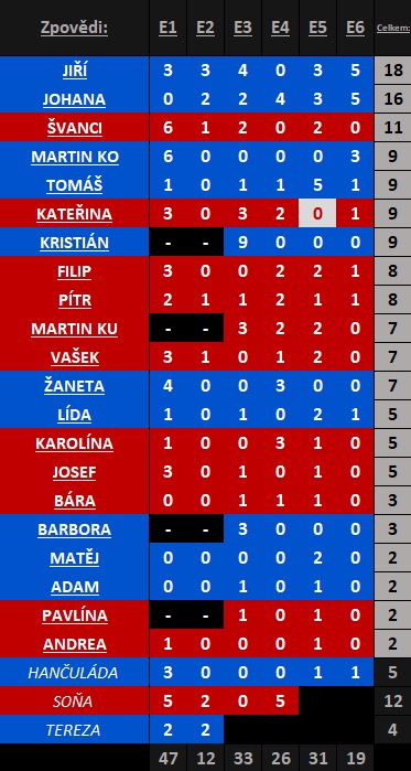 Radši bych ale asi vidět příště jít na kmenovku Hrdiny, jednak fandím Johance a Lídě aby se protáhly tou hrou co nejdál, jednak by to mohlo být u Hrdinů zamotanější co se týče strategie (nějak si neumím představit, že by u Rebelů příště nebyl Duel nějak složený z trojice Johanka/Lída/Barbora, a z těch 2 co by přežily i ten další, ale kdoví).