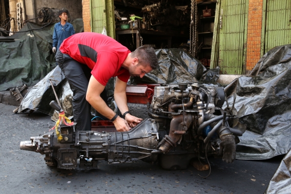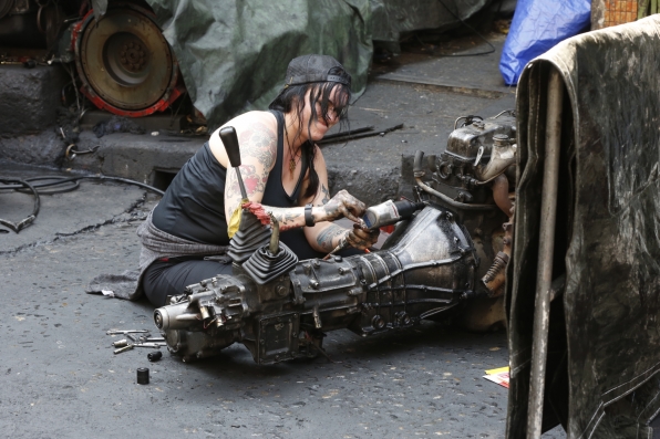 Obě obálky nasměrovaly týmy k autoopravně, kde na ně čekal Roadblock. Jeden člen týmu musel rozebrat motor, ve kterém našel další indicii. Podle kusu látky s nápisem „Metal Castle“ už musely týmy najít další etapovou zastávku.